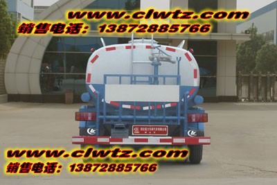 具有前沖后灑、側(cè)噴(更換噴頭后變?yōu)閭?cè)花灑)、后置式工作平臺(tái)(帶踏梯,四周有安全護(hù)欄)、平臺(tái)上設(shè)置有高壓水炮(可360°旋轉(zhuǎn),可調(diào)成柱狀最大射程28米,也可調(diào)成霧狀最大射程14米,可調(diào)成:直沖狀、大雨、中雨、小雨、毛毛雨),整車(chē)灑水寬度大于14米.配備優(yōu)質(zhì)大功率專(zhuān)用灑水泵,取力器,雜物過(guò)濾網(wǎng),國(guó)標(biāo)通用65型消防接口(可通過(guò)消防栓加水)、1套自流球閥系統(tǒng)(可自吸自排,最大吸程6米),2根引水鋼絲膠管(帶陰陽(yáng)快速接頭),配鎖,水位計(jì),作業(yè)高音喇叭.兩側(cè)及后加強(qiáng)型保險(xiǎn)杠,防滑爬梯,膠管儲(chǔ)存筒.
