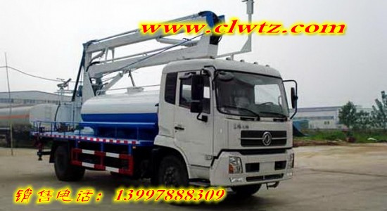 國(guó)四東風(fēng)天錦高空作業(yè)綠化噴灑兩用車(chē)的基本組成:14米折疊臂,防銹罐體,取力器,傳動(dòng)軸,專(zhuān)用自吸式灑水泵,管網(wǎng)系統(tǒng),噴灑系統(tǒng),工作平臺(tái),二類(lèi)底盤(pán)等。