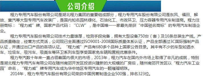 程力汽車公司主要銷售:冷藏車、清洗吸污車、抑塵車、吸糞車、道路清掃車、高空作業(yè)車 地址:湖北省·隨州市·南郊平原崗·程力汽車工業(yè)園 網(wǎng)站備案號:鄂ICP備18018938號-33
