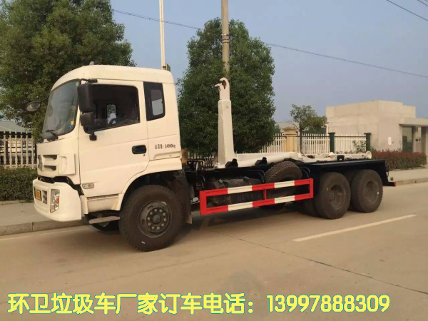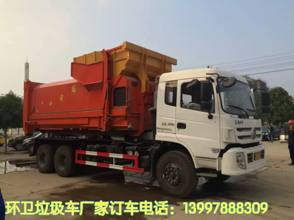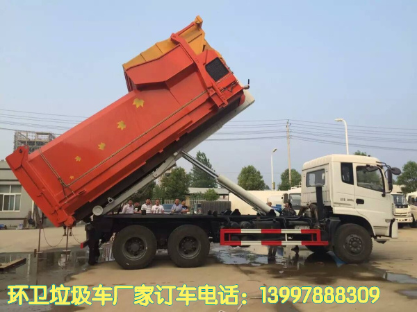 一個星期前,程力環(huán)衛(wèi)垃圾車廠家出售的18方移動垃圾壓縮箱配東風后雙橋車廂可卸式垃圾車拖運: