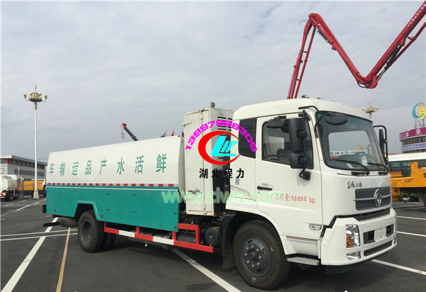 活水產(chǎn)品運輸車也可以叫活魚運輸車,海鮮運輸車,鮮活魚運輸車是運用生物學、水環(huán)境工程學、水產(chǎn)養(yǎng)殖學、養(yǎng)殖水處理工程學等原理,與自動控制、高效除污、高壓增氧、生物過濾等多項現(xiàn)代化高新技術(shù)結(jié)合. 現(xiàn)在人們普遍都在追求“吃要吃好、吃精、吃鮮活無污染的食品”的生活質(zhì)量。鮮活魚是老百姓餐桌上必不可缺的主要食品,眾所周知,鮮魚一旦離開水會立馬死去,魚一旦死了,很快就會變質(zhì),變味,身價也會跟著大跌,甚至一文不值。針對目前的市場情況,程力公司開發(fā)了一款既能讓魚長時間存活又適合長途運輸?shù)亩喙δ堋磅r活水產(chǎn)品運輸車”,并于2013年3月申請了實用新型專利證書(此專利技術(shù)屬于全國首創(chuàng))。