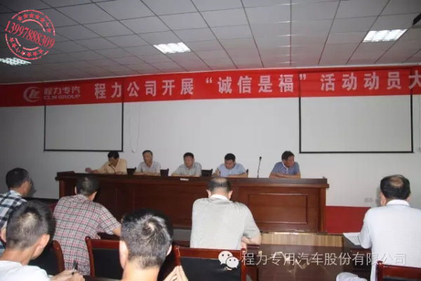 9月23日公司總經(jīng)理程阿羅參加公路養(yǎng)護(hù)車專業(yè)廠等專業(yè)廠《關(guān)于開展“誠信是?!被顒拥耐ㄖ返姆纸M學(xué)習(xí)和討論。會議學(xué)習(xí)了程力專汽黨字(2016)5號文件,《關(guān)于開展“誠信是?!被顒拥耐ㄖ?。公司總經(jīng)理程阿羅強(qiáng)調(diào),要求大家端正思想,認(rèn)真學(xué)習(xí),提高認(rèn)識,樹立公司形象,加強(qiáng)典范經(jīng)營。同時強(qiáng)調(diào)經(jīng)濟(jì)上升,思想不滑坡。銷售承諾必須兌現(xiàn)。從源頭抓起,原材料不進(jìn)劣質(zhì)品,按照合同配置要求,進(jìn)行裝配,不偷工減料。嚴(yán)格生產(chǎn)工藝管理和流通過程管理。并強(qiáng)調(diào)執(zhí)行合同的嚴(yán)肅性,按時交貨,履行價格水準(zhǔn),做好售后服務(wù)工作,提高程力在市場的信譽(yù)度,打造好“程力威”馳名商標(biāo)品牌,讓“程力威”品牌深入每個經(jīng)營者和用戶的心中。