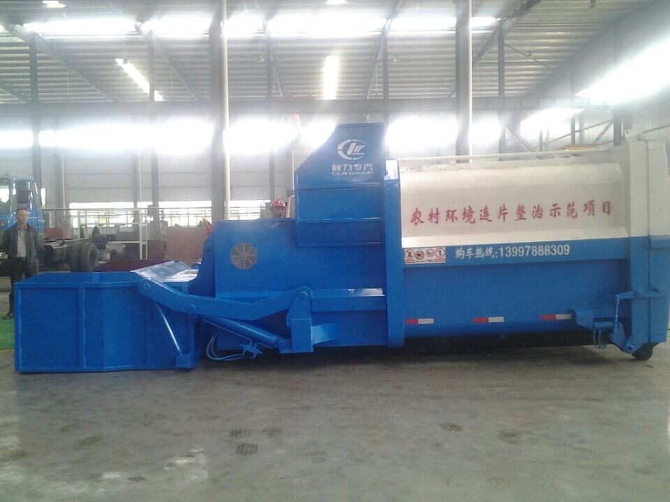 10)公司生產(chǎn)的垃圾壓縮站用車廂可卸式垃圾車(俗稱鉤臂車)進行運輸,一般一臺車配4~6個我們的垃圾壓縮站。大大提高了車的使用效率。減少總的投資管理維護費用。
