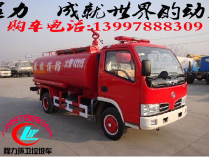 東風國五消防灑水車又稱綠化噴灑車,運水車罐體容積5方,該車采用東風朝陽95馬力柴油發(fā)動機和江蘇四達95馬力柴油發(fā)動機,7.00-16輪胎,汽剎,5檔變速箱,2噸前橋,4噸后橋,整車外形尺寸:長×寬×高(mm)5990/1950/2300,總質(zhì)量(kg)6495,額載質(zhì)量(kg)3100,罐體有效容積:3噸-5噸,帶專用消防灑水泵,可自吸自排,帶前沖后灑,側(cè)噴,配消防灑水高炮.