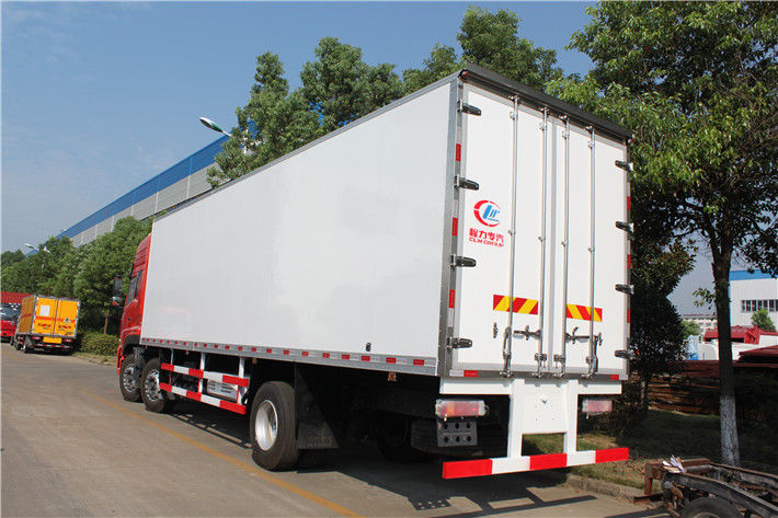 東風(fēng)天龍前四后八冷藏車采用東風(fēng)天龍專用底盤,東風(fēng)天龍通過國際合作,融合了當(dāng)今世界先進技術(shù),并在研發(fā)過程中實現(xiàn)了大量的自主創(chuàng)新,使整車各個系統(tǒng)的性能全面提升,尤其在技術(shù)、安全性、經(jīng)濟性、可靠性、舒適性等方面的表現(xiàn)突出。其配備康明斯(國五)340馬力發(fā)動機,陜齒12檔變速箱,5噸雙前橋,10噸后雙橋,有方向助力、離合助力、駕駛室液壓電動翻轉(zhuǎn)、電動門窗、中控門鎖、后視鏡加熱、冷暖空調(diào)、ABS、巡航系統(tǒng),輪胎11.00R20