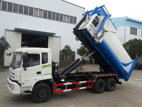 移動壓縮箱壓縮比為1方壓縮好的垃圾820公斤,1000公斤=1噸,東風天錦16噸勾臂車配10-12方移動站,則壓縮好的垃圾為10噸加上箱5噸;東風天龍25噸勾臂垃圾車配15-18方移動壓縮站,壓縮好的垃圾為12噸左右加上箱6噸,這是正常的生活用垃圾。