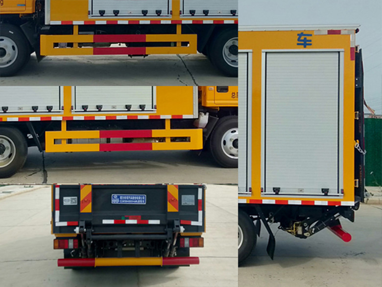 整車備注: | 1、廂體內(nèi)設(shè)有專用裝置:直流高壓發(fā)生器、斷路器導(dǎo)電回路電阻測(cè)試器、電纜故障探測(cè)儀等,主要用于應(yīng)急搶險(xiǎn)救援,頂部封閉不可開啟;2、側(cè)/后防護(hù)材料為Q235A,側(cè)防護(hù)螺栓連接,后防護(hù)焊接連接,后防護(hù)截面尺寸120×120mm,下邊緣離地高360mm;3、ABS型號(hào)/廠家: APG3550500A/浙江亞太機(jī)電股份有限公司;4、該車裝有液壓尾板,液壓尾板收起狀態(tài)的水平長(zhǎng)度為280mm,尾板質(zhì)量為350kg;5、各發(fā)動(dòng)機(jī)凈功率(kW)值如下: JX4D30B6H/83, JX4D30A6H/93. | ||