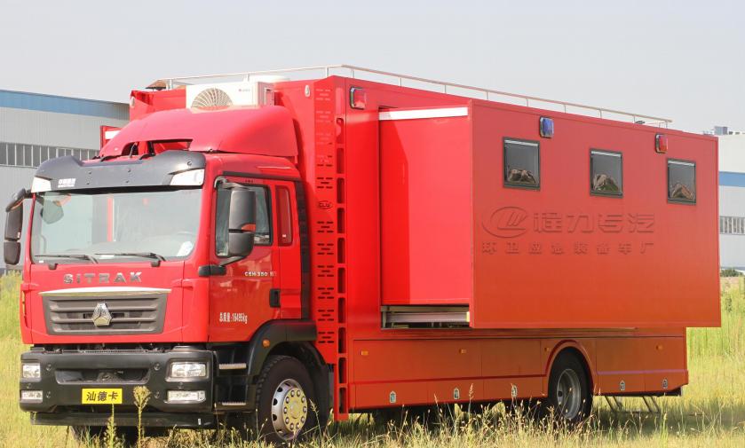 程力重汽汕德卡24人宿營車,車輛型號:CLW5160TSYASL,采用重汽汕德卡G5底盤,5800mm軸距,曼機(jī)350馬力發(fā)動機(jī),其主要用途是用于消防、部隊(duì)?wèi)敉獾木仍F(xiàn)場,給救援人員提供休息場所,最大限度提高他們作戰(zhàn)能力的后勤保障車輛。