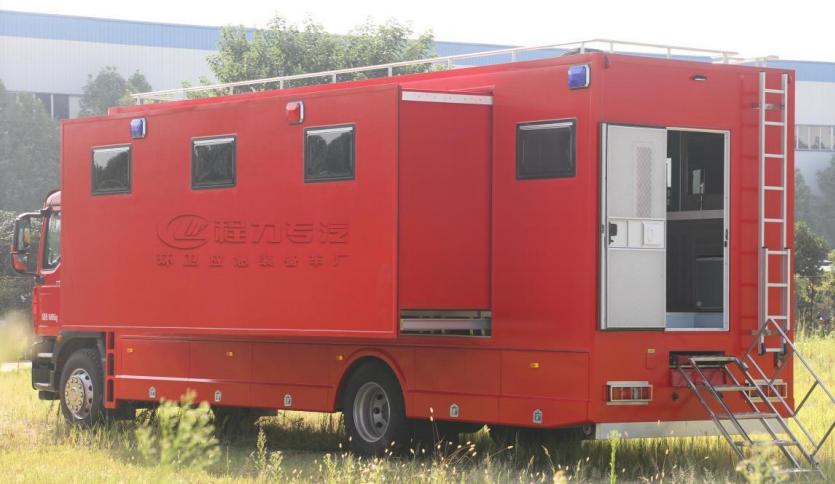 車廂采用液壓雙拓展結(jié)構(gòu),隔熱保溫,防雨防火防輻射,內(nèi)部為上下鋪共24個(gè)鋪位,每個(gè)床鋪配讀書燈和帶USB接控插座,獨(dú)立儲衣柜,公區(qū)配有多媒體設(shè)備,空調(diào)、飲水機(jī)、冰箱、電磁爐、微波爐等生活設(shè)備,以及獨(dú)立衛(wèi)生間及洗漱設(shè)施,能夠?yàn)?4名戶外救援人員提供溫馨舒適的宿營環(huán)境和日常起居需求。同時(shí)它還有自供電能力,標(biāo)準(zhǔn)工況單次供電時(shí)長約四到六小時(shí)。